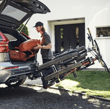 Compact and lightweight for everyday use Thule VeloCompact is a compact and lightweight bike carrier for everyday use. It is the ideal choice for a range of bike styles, including road bikes, ebikes or mountain bikes. Even when the bikes are loaded, you still have access to the boot. This compact everyday bike rack can also be folded and becomes small enough to store in the boot of most cars, prices subject to change.